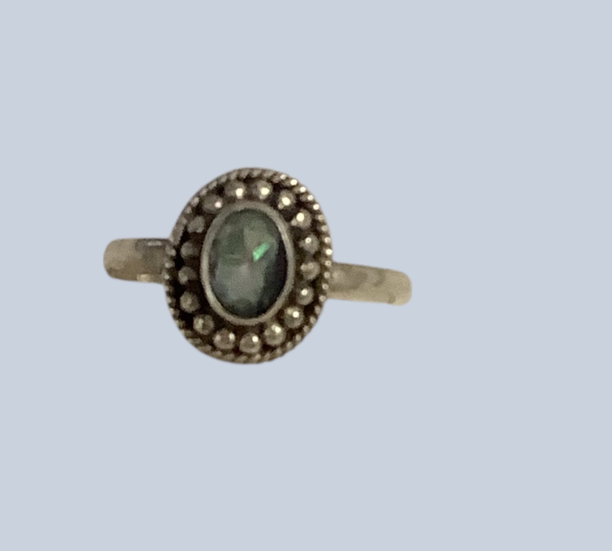 Mystic Topaz is worn to increase spiritual connection, self-care, and opulence. It balances the Crown Chakra. It brings feelings of deserving, gratitude, and prosperity. It also raises vibration. It is a beautiful stone with many different colors that appear within it.